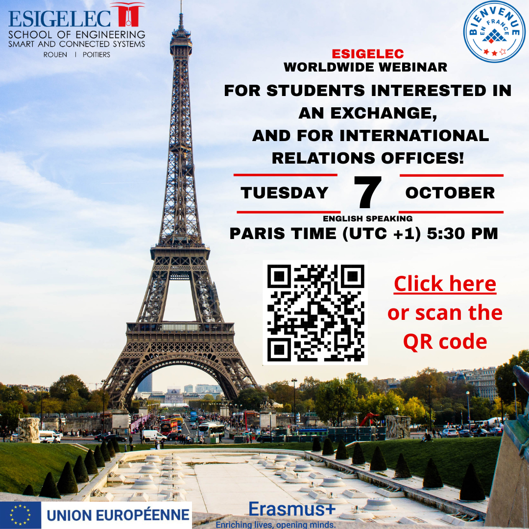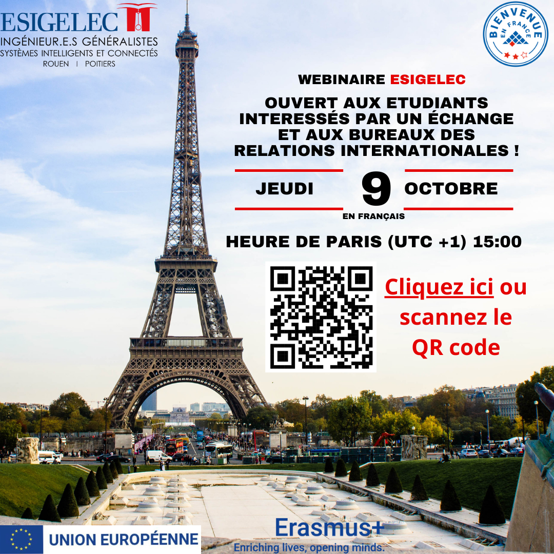 You can take part in ESIGELEC, School of Engineering in France webinars: